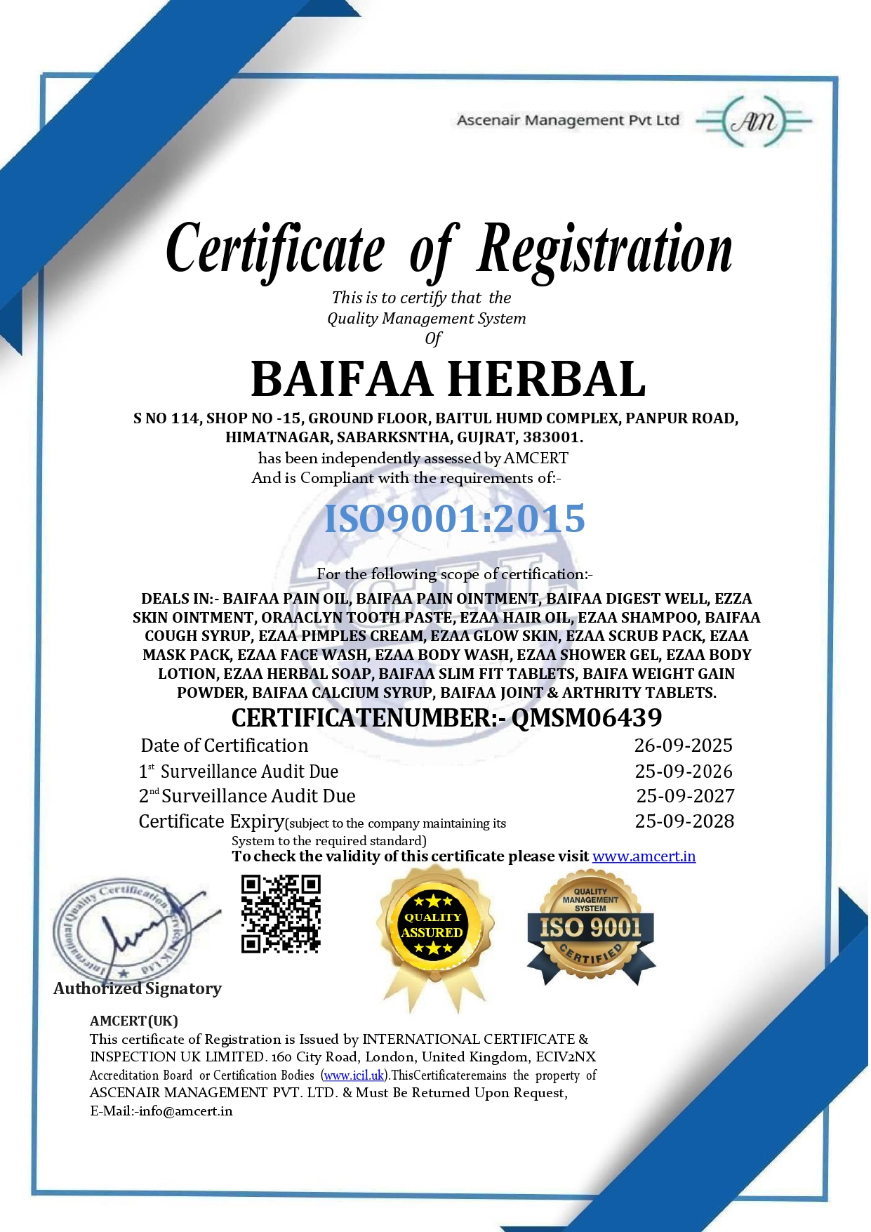 Every Baifaa Herbal product is made under stringent safety and efficacy guidelines, adhering to national and international standards.